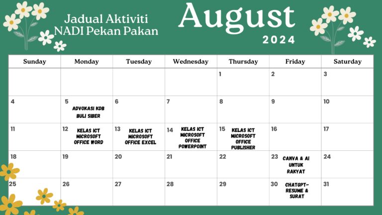 Jadual Aktiviti NADI Pekan Pakan Bulan Ogos 2024