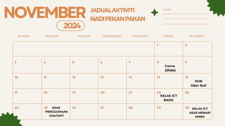 Jadual Aktiviti Bulan November 2024